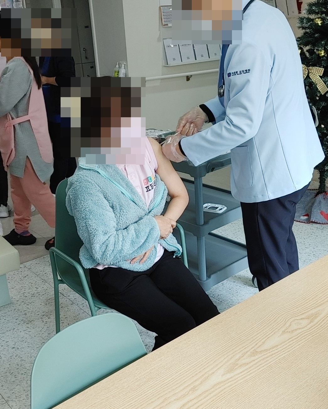 23. 12. 4. (월) 코로나19 백신 접종오늘 촉탁의 선생님 방문하시어 어르신들과 직원들 코로나19 예방주사를 놓아주셨습니다.