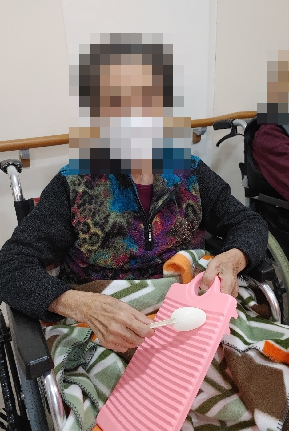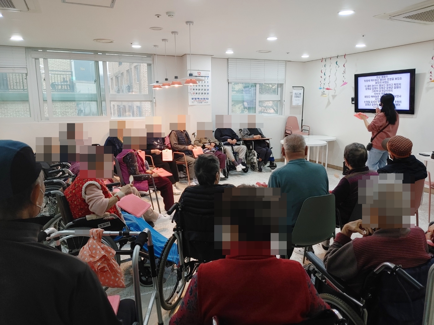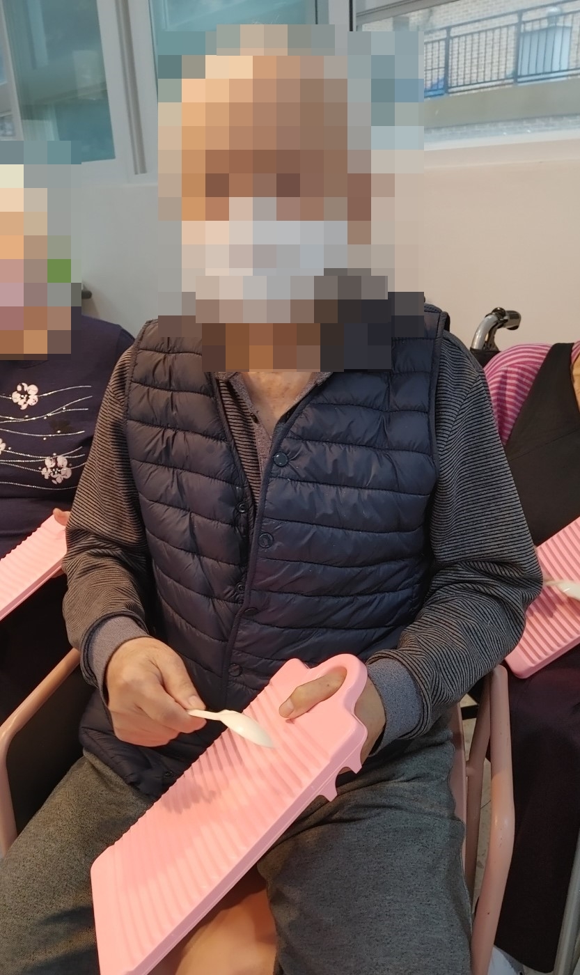 23. 12. 6. (수) 음악치료오늘 오후 프로그램은 외부강사님이 오시는 음악치료 시간이었습니다.노래 박자에 맞춰 빨래판을 숟가락으로 긁어보며 스트레스도 푸시고, 청각과 촉각을 자극하여 인지기능에도 도움을 주는 활동을 하셨습니다.