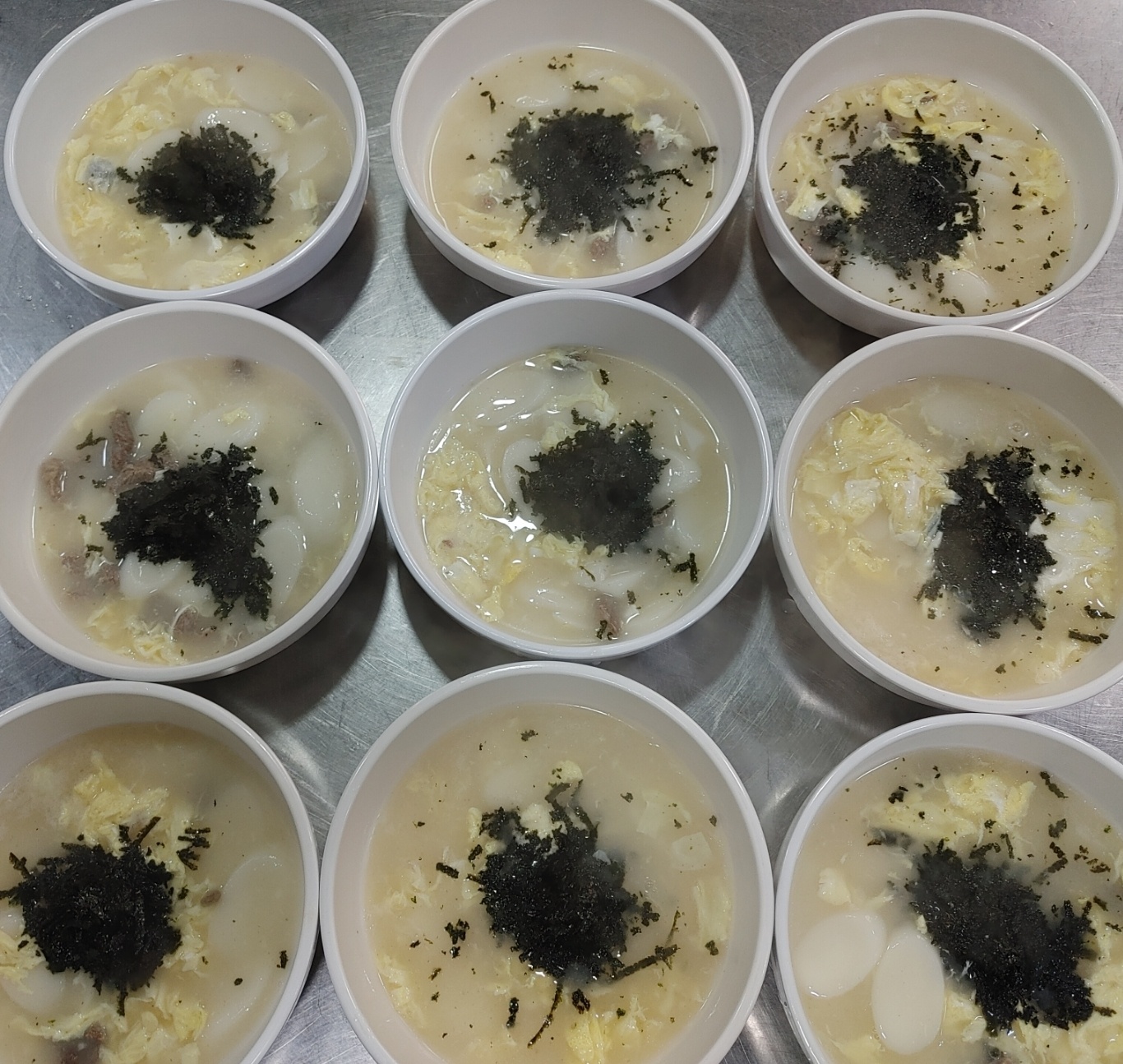 24. 2. 10. (토)설날을 맞이하여 오늘 점심시간에는 맛있는 떡국을 드셨습니다.부드럽게 살이 쏙 빠지는 갈비찜과, 쫄깃한 목이버섯이 들어간 잡채도 함께 드셨습니다.보호자님께서 기증해주신 산적, 녹두전, 깻잎전 등 다양한 전들도 먹기 좋게 잘라드리니 정말 좋아하셨습니다^^ 모두들 건강하시고 새해 복 많이 받으세요~~!!!!( ˆoˆ )