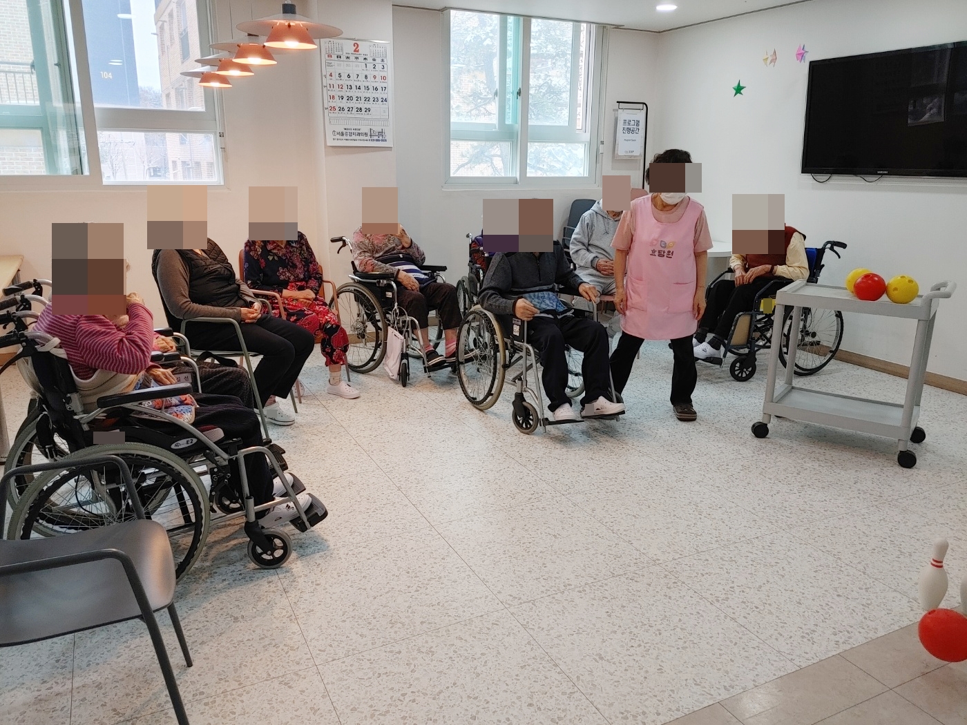 24. 2. 22. (목) 볼링&이미용2층 어르신들은 신체활동을 흥미롭게 하면서도 기분을 전환하여 스트레스를 해소할 수 있도록 볼링을 했습니다.개인전으로도 해보고, 팀전으로도 해보며 서로 응원도 해주고, 다른 사람의 기술을 따라해보기도 하셨습니다.3층 어르신들은 위생관리도 하고 단정한 용모를 위하여 미용을 하셨습니다.깔끔하게 머리를 단장하시고 쑥쓰러워 하시기도 하고, 개운해 하시기도 하셨습니다.