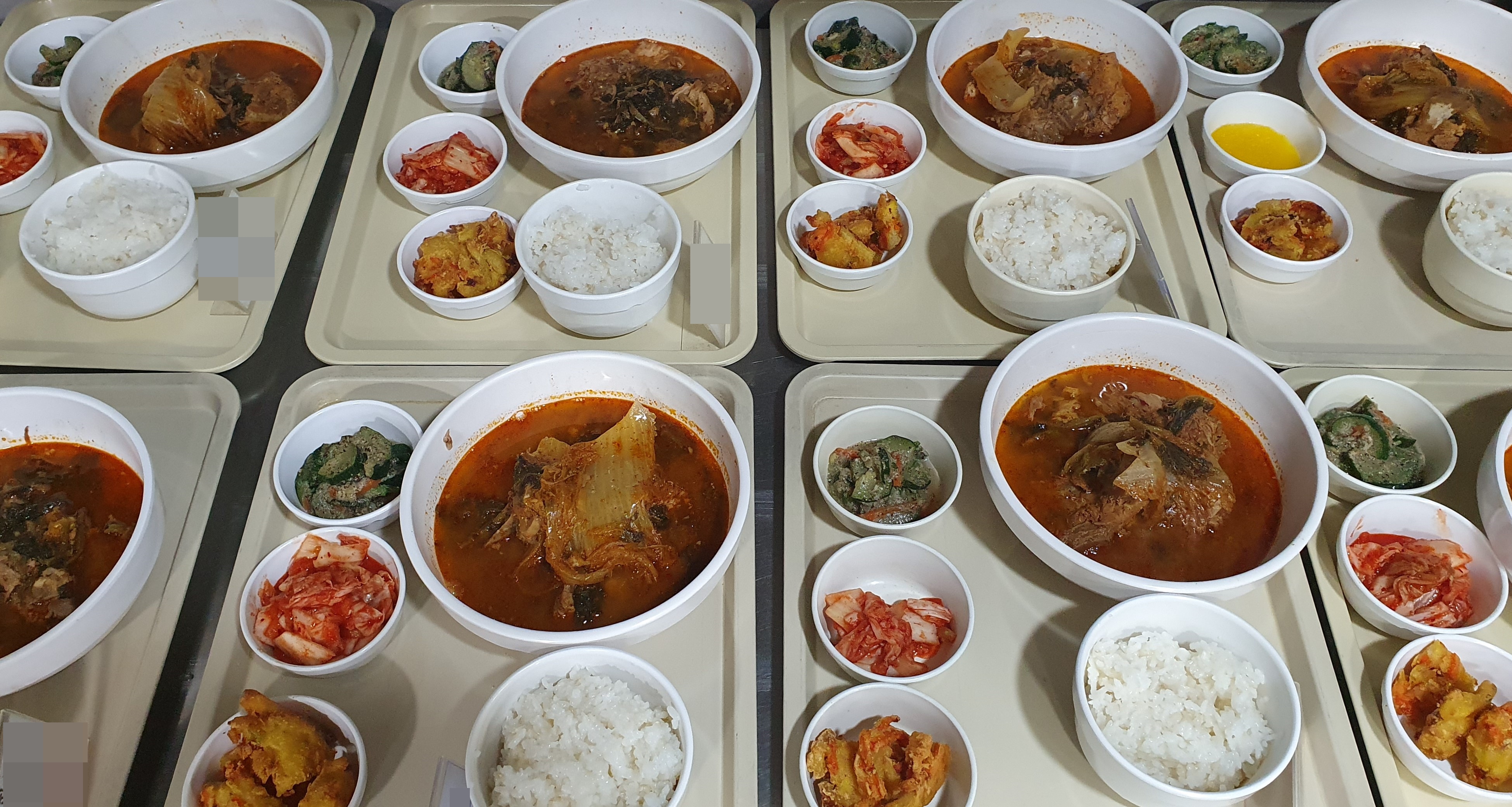 뜨끈한 국물이 생각나는 쌀쌀한 날씨에 맞게 오늘의 특식은 뼈다귀 감자탕입니다.