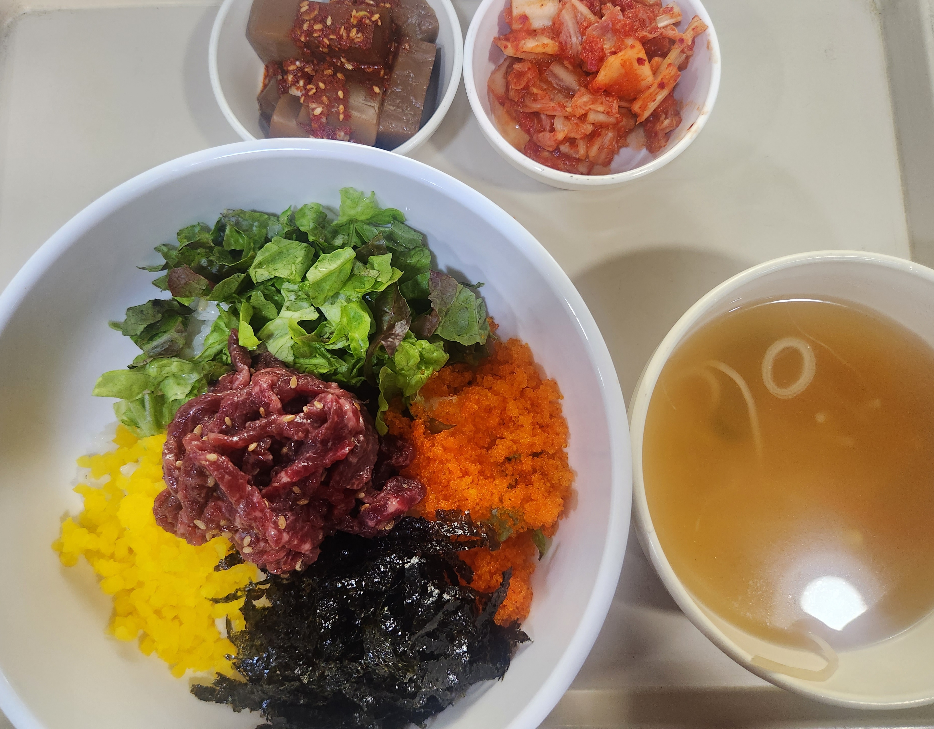 오늘은 한우육회비빔밥이 나올 예정이라하니