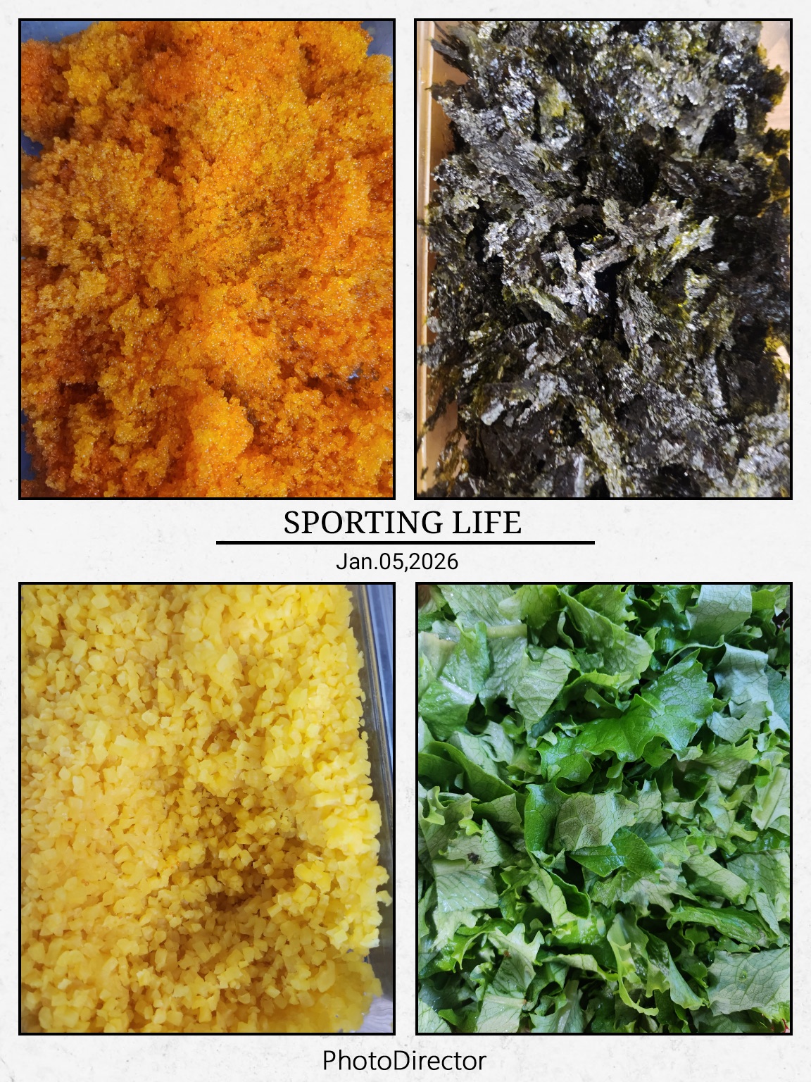 갖지은 밥에 참기름 듬뿍깔고 갖은야채에