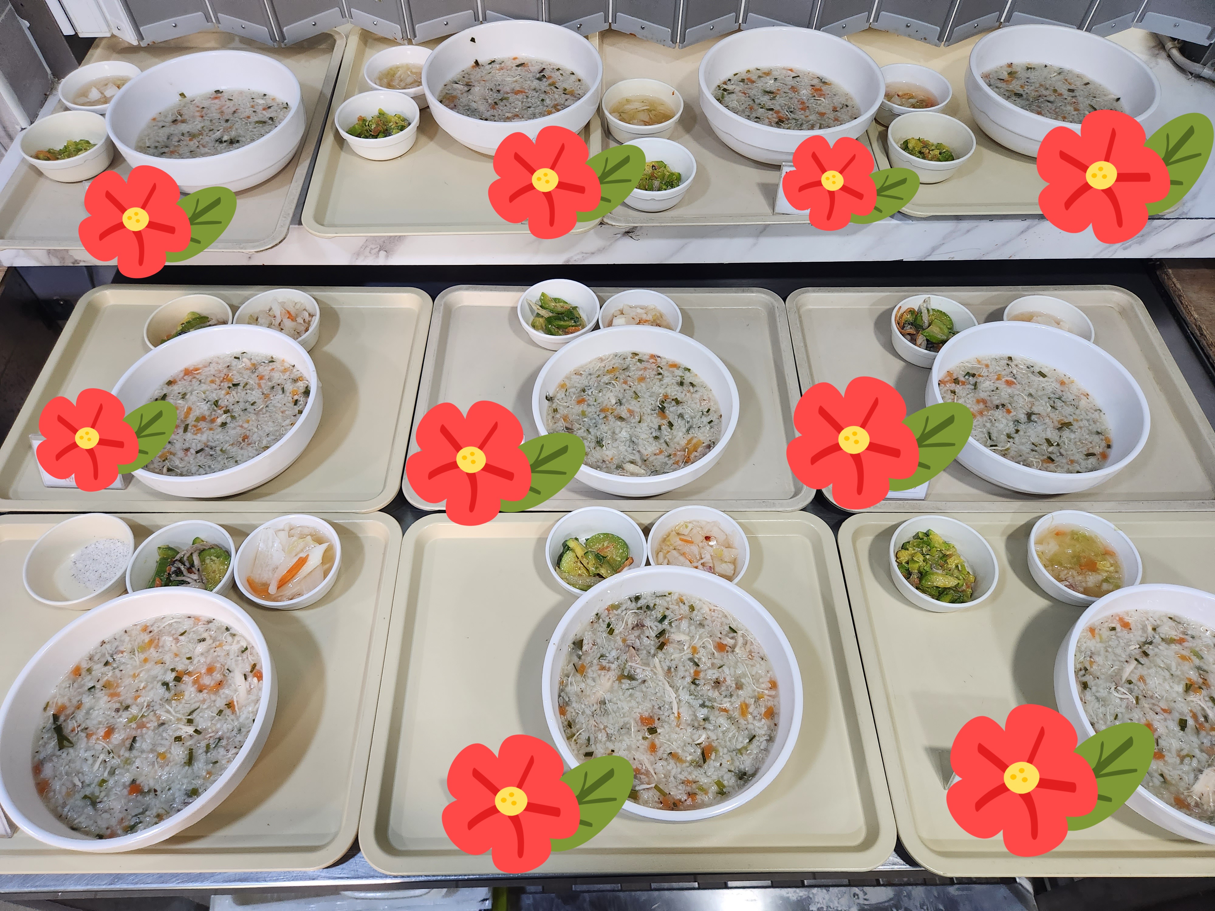 찹쌀과 갖은야채넣어 푹끓였습니다.