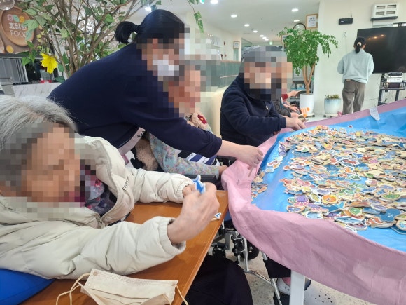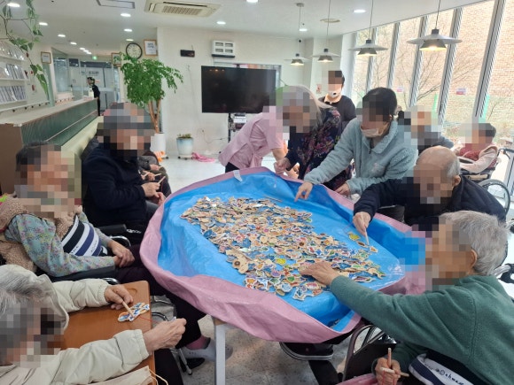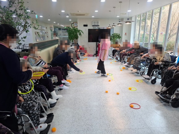 26.02.26 (목) 여가프로그램 " 낚시 " 봄이 벌써 마당앞까지 온 듯합니다~ 시작전 간단한 몸풀기 게임 공을 낚아채 내앞으로 당기기~~ 본게임은 물고기 낚시하기^^ "고기를 잡으러 강으로 갈까" 자석으로 되어있어 딱맞추기만 하면 낚시성공!!! " 물고기가 어마어마하네" 동심으로 돌아가본 즐거운 시간이였습니다.