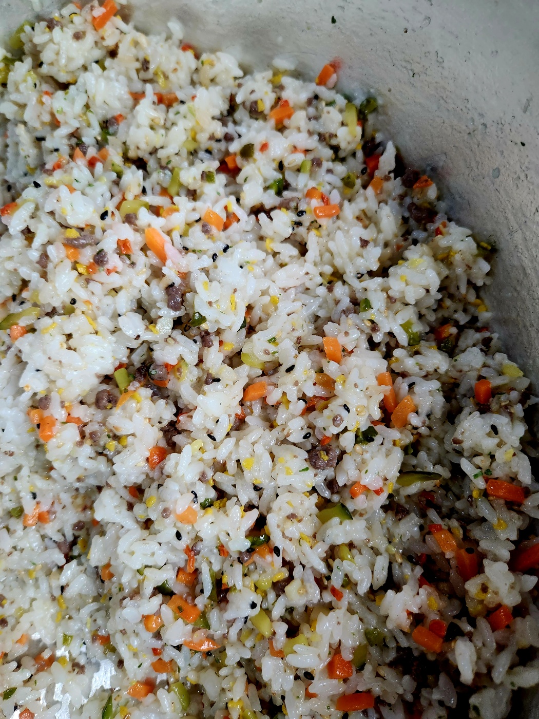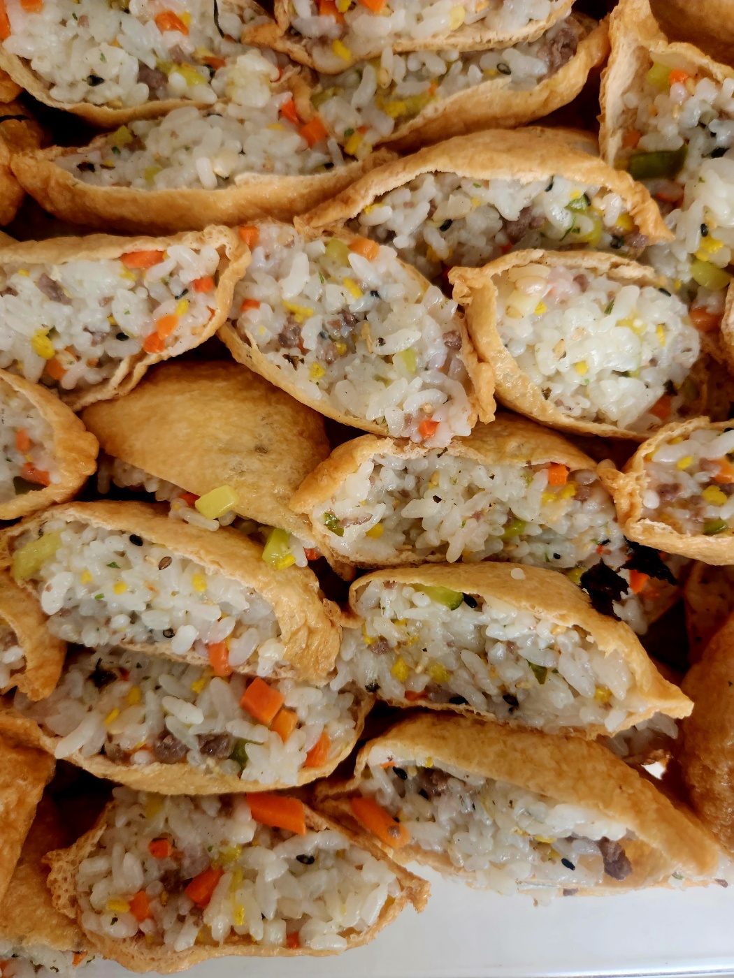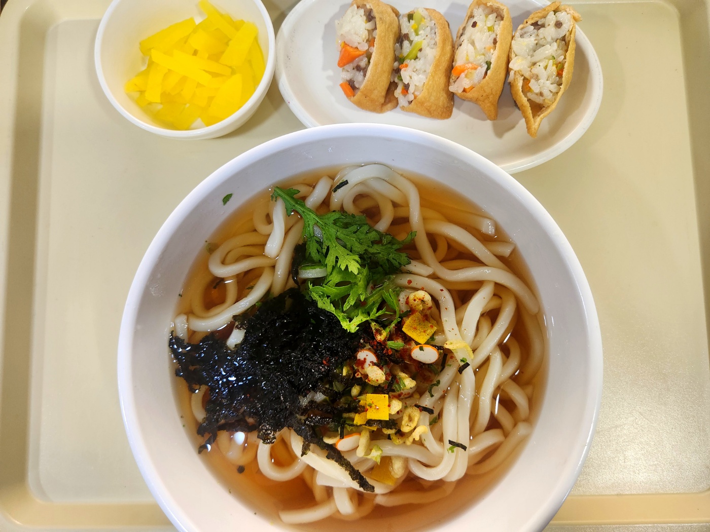 오늘은 소고기 넣어 만든 소고기유부초밥과 우동을 준비해 드렸습니다.