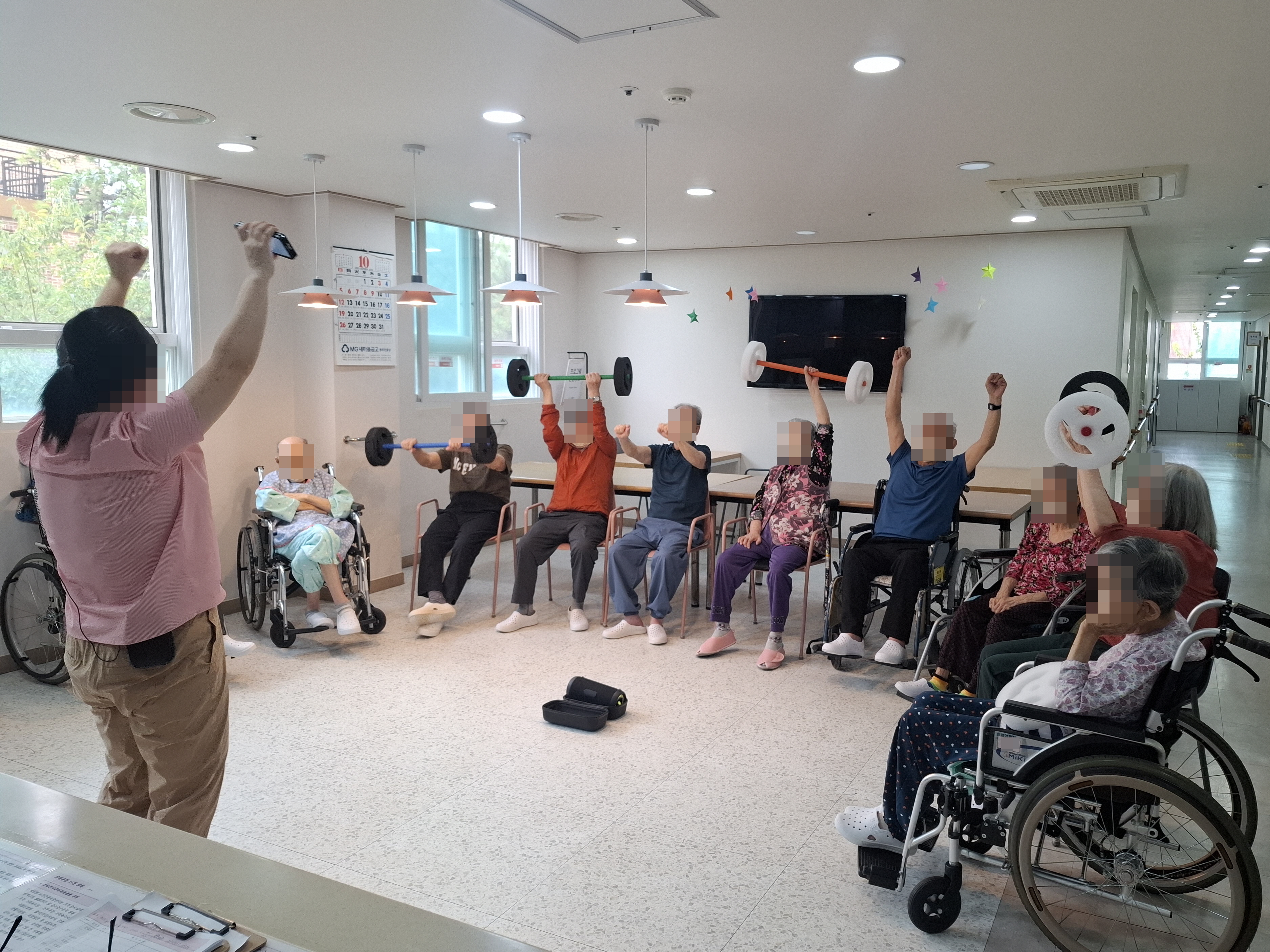 그래서 오늘 실버체조는 2층 일부