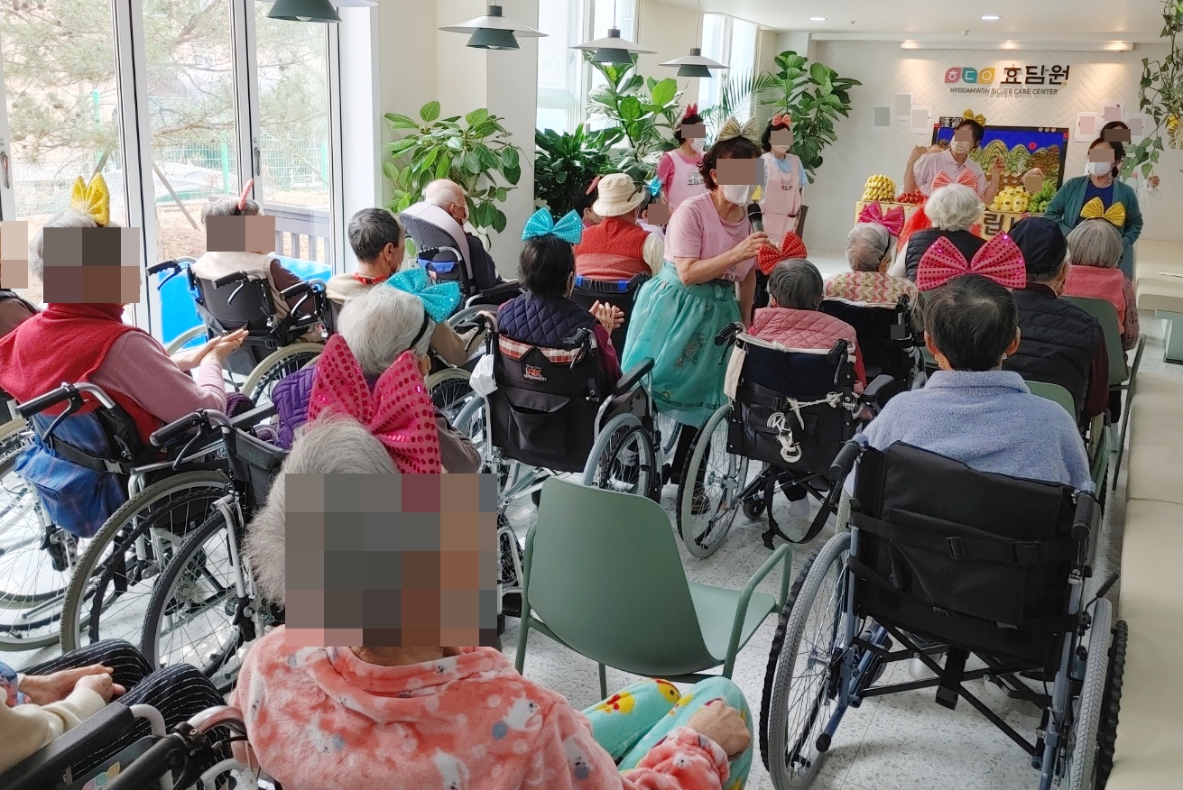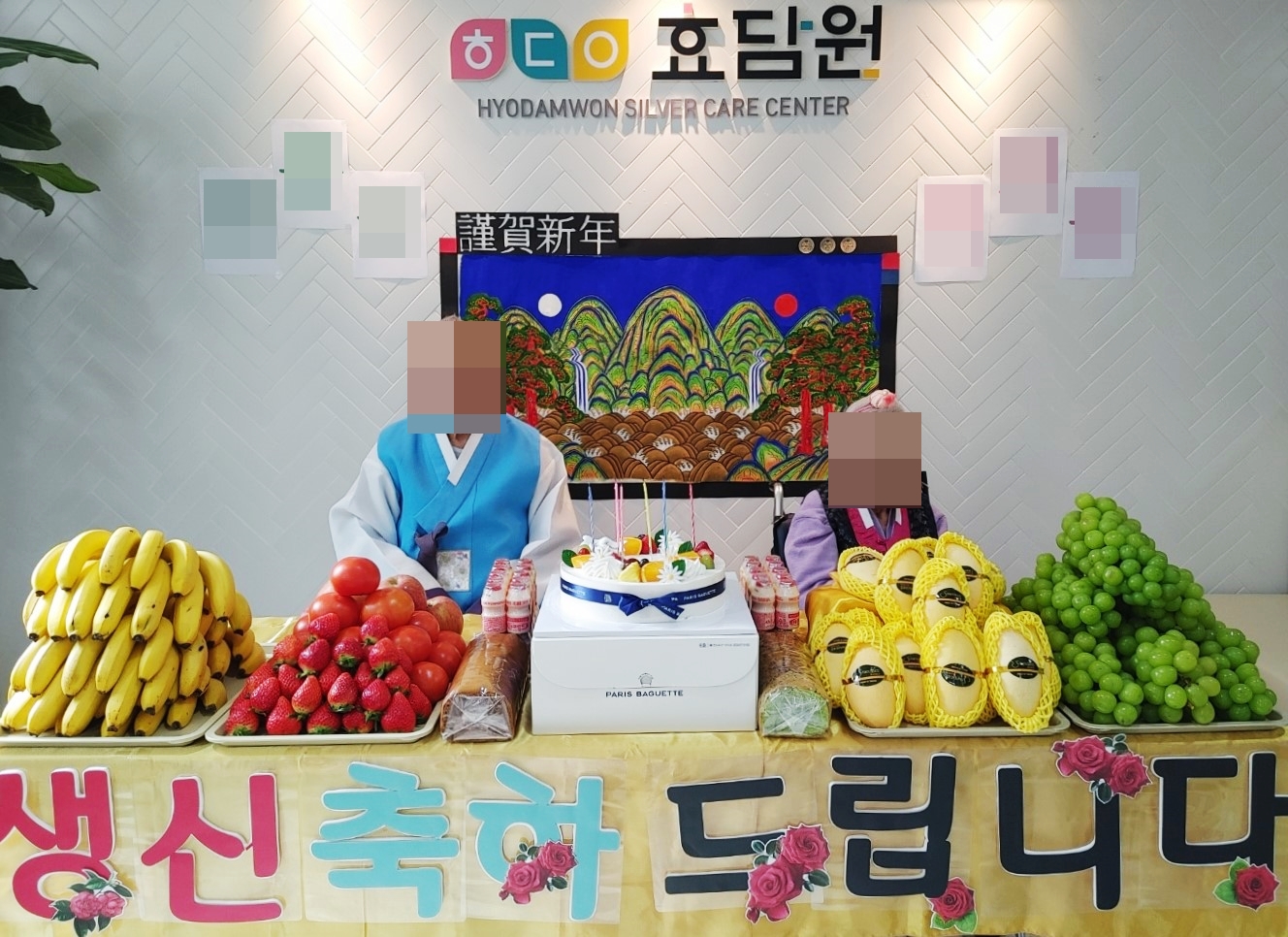 24. 3. 7. (목) 생신잔치이번 달 생일자 어르신들께서 같은 날이셔서 특별히 당일인 오늘,생신잔치를 진행하였습니다.두 분을 위하여 각 층 어르신들께서 한 자리에 모여 기쁜 마음으로 축하노래를 부르며 박수를 치시고, 춤도 추시며흥겨운 잔치 한마당이었습니다!!