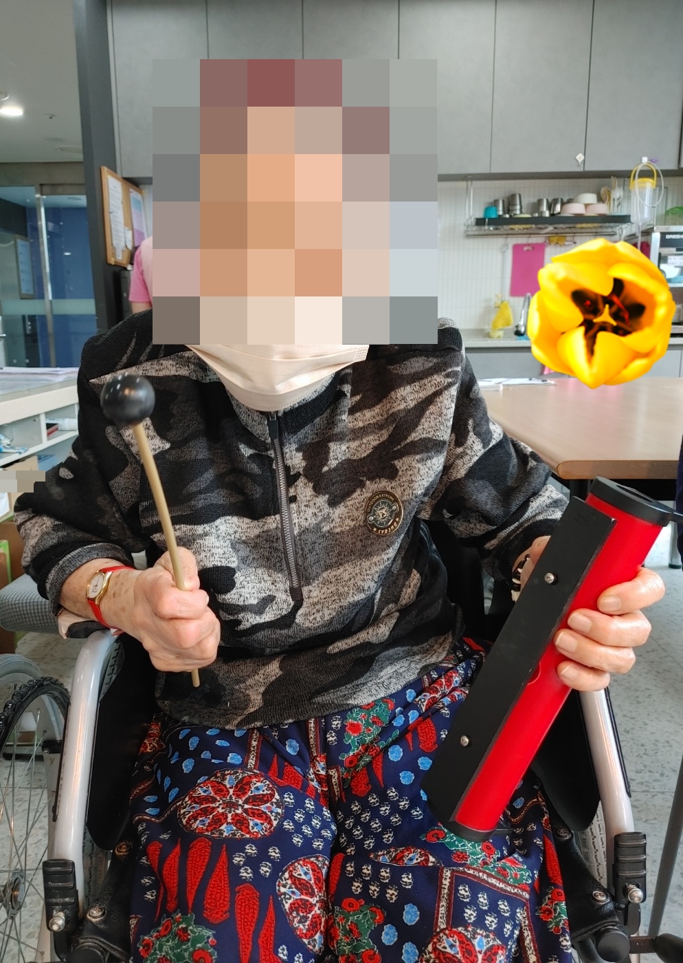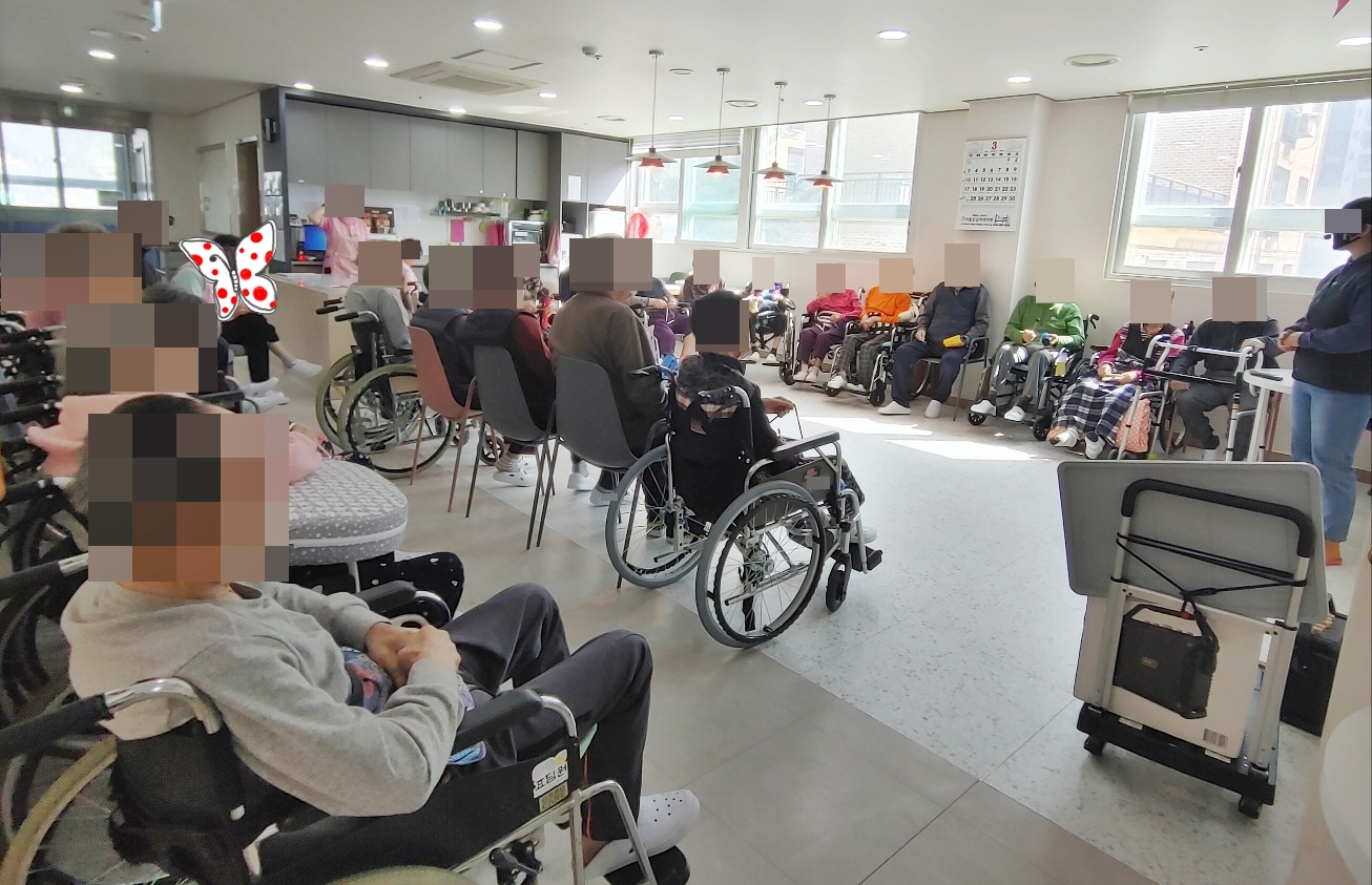 24. 3. 20. (수) 음악치료어르신들의 취향을 저격하는 <비 내리는 영동교> 노래에 맞추어 합주를 하셨습니다~노란색과 파란색, 보라색으로 색을 표시하여 어르신들께서 내 차례를 알아보기도 편하시고, 집중도도 보다 높아지셔서다양한 악기 소리가 무척 곱게 울렸습니다.