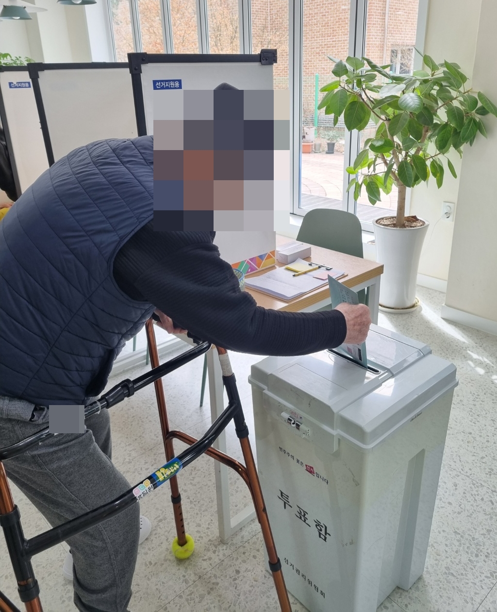 24. 4. 4. (목) 거소투표어르신들의 참정권 행사를 위해 거소투표를 진행하였습니다.동두천시 선거관리위원회에서 방문하여 거소투표소를 설치하고,한 분 한 분의 투표를 도와주셨습니다.어르신들께서 눈이 침침하심에도 선거공보를 관심 있게 보시고투표용지에 소중한 한 표를 찍으셨습니다!!