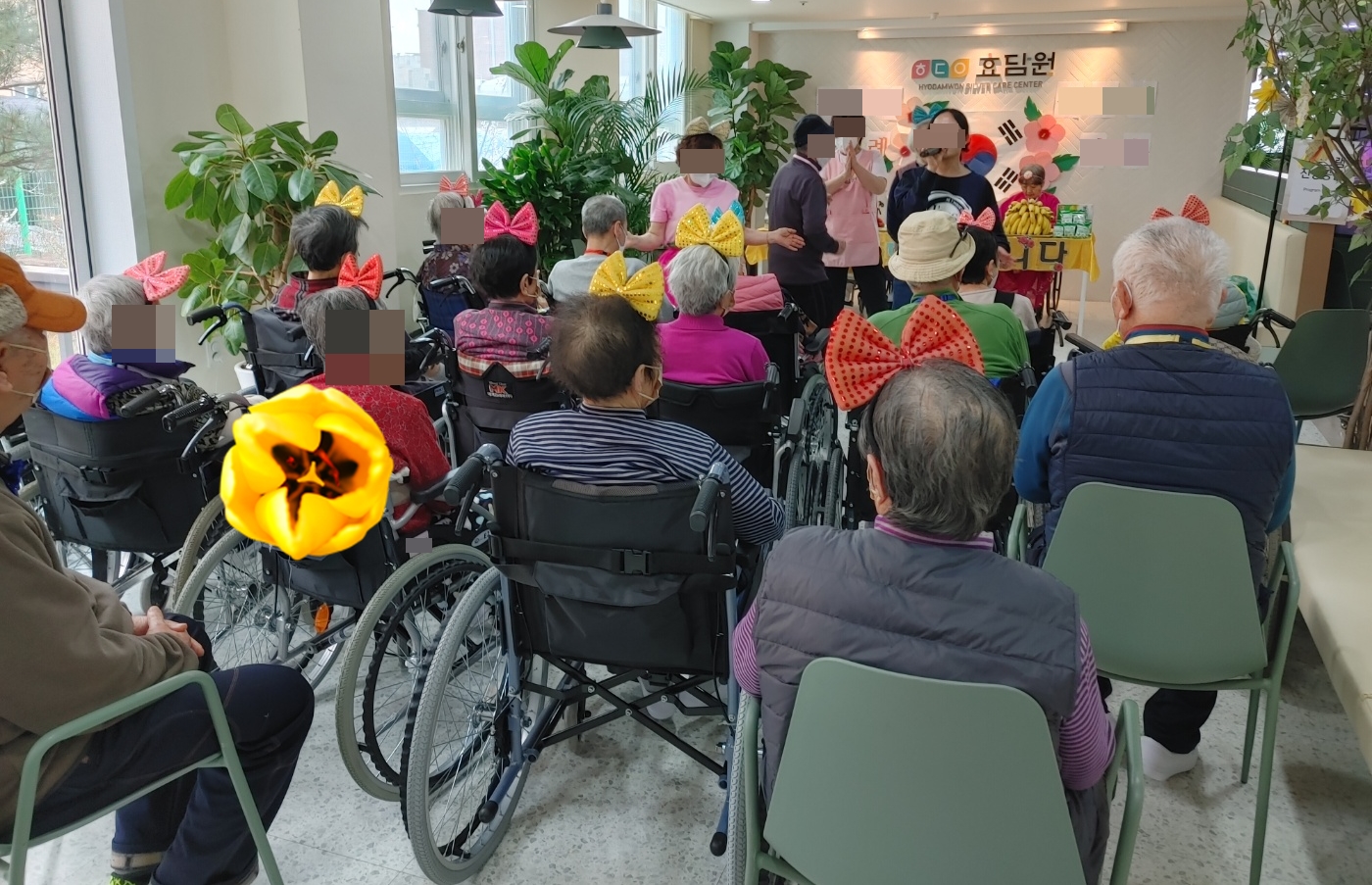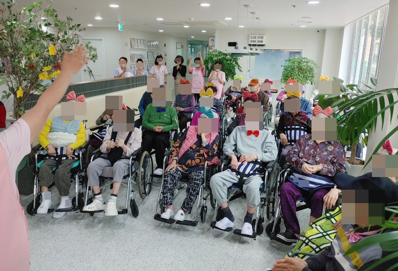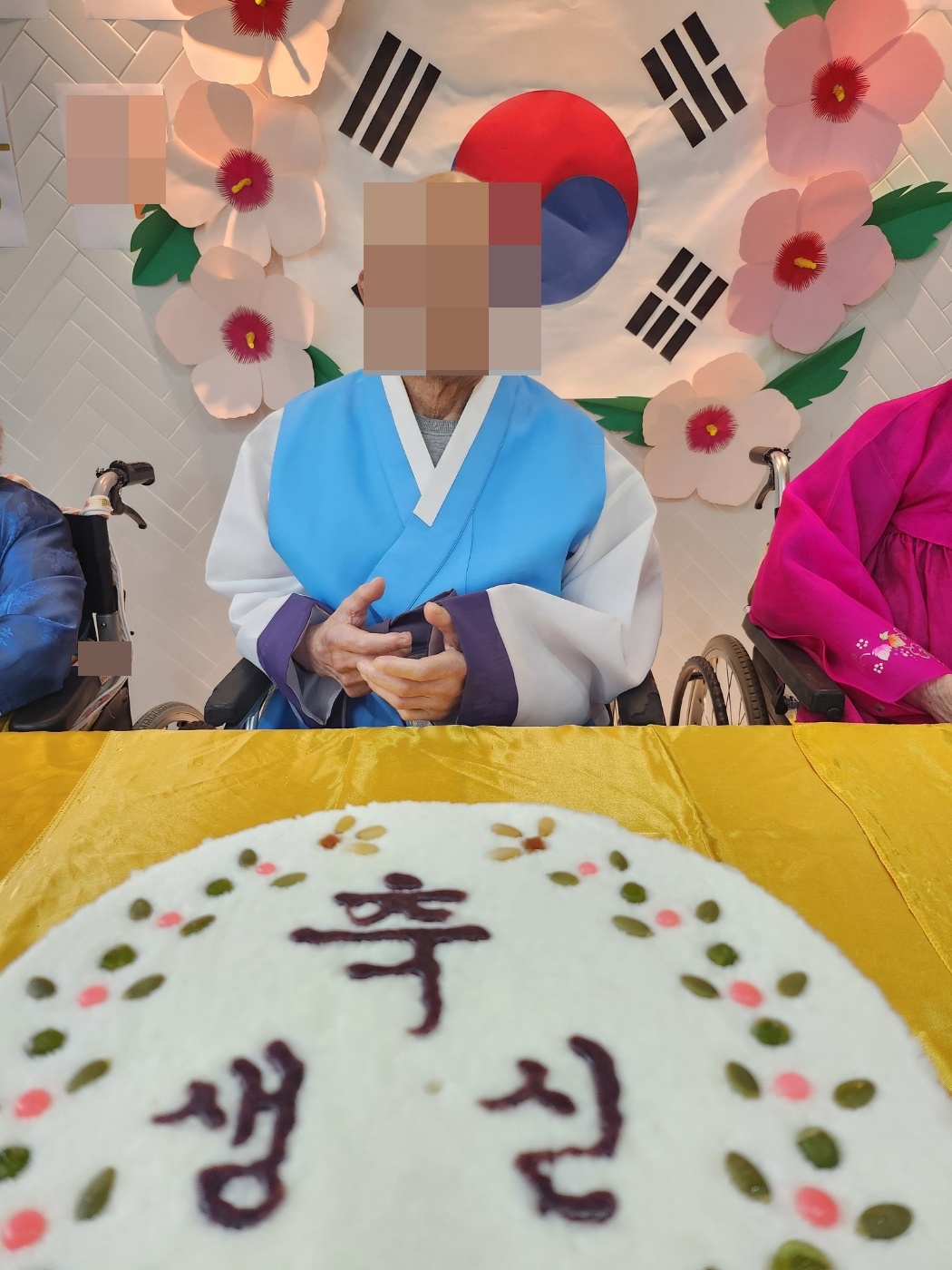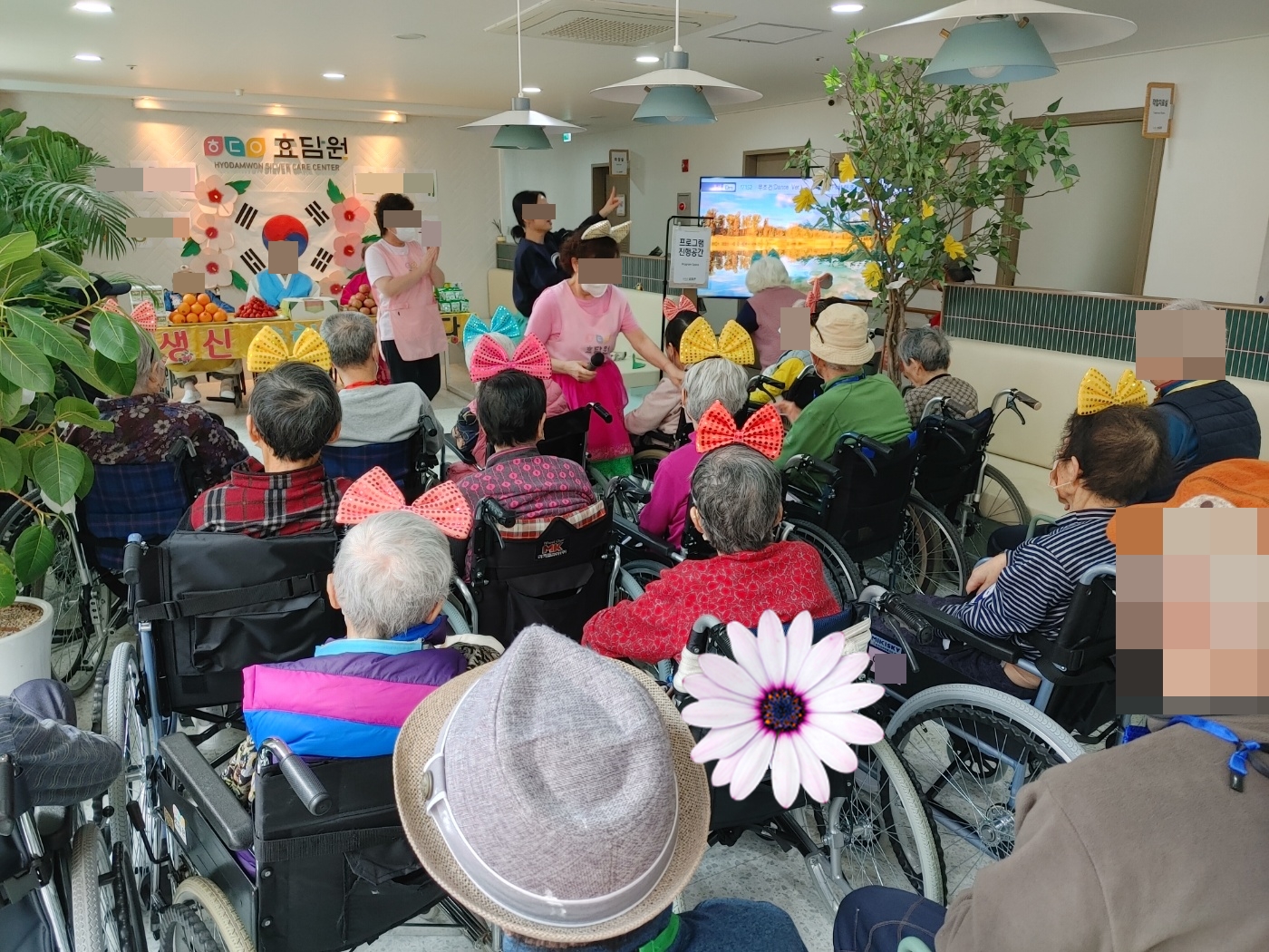 24. 4. 5. (금) 생신잔치오늘은 이번 달 생신이신 어르신들을 위한 잔치 한마당이 펼쳐졌습니다~주인공이신 어르신들은 곱게 한복을 차려 입으셨고,참석하신 어르신들은 층 상관 없이 함께 축하를 해주시며 흥겨운 시간을 가지셨습니다!