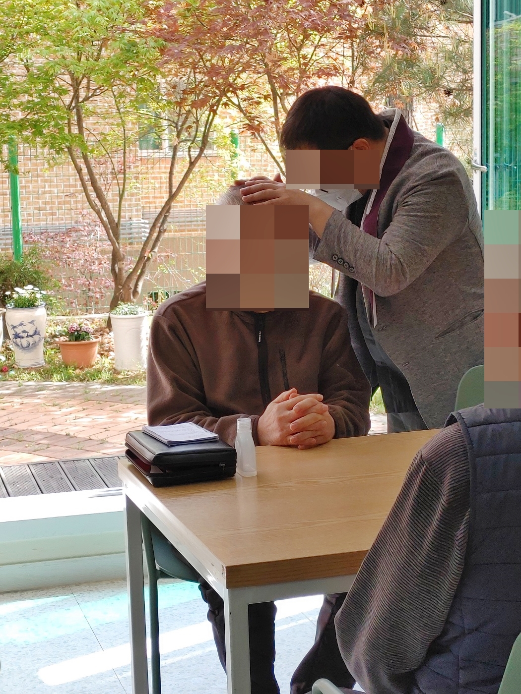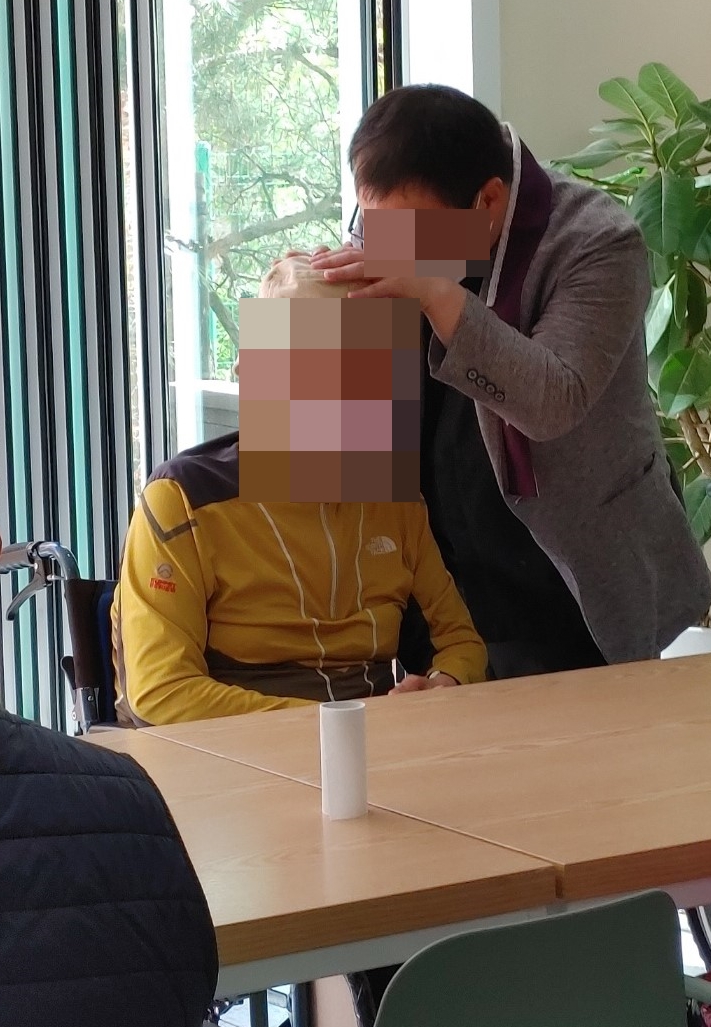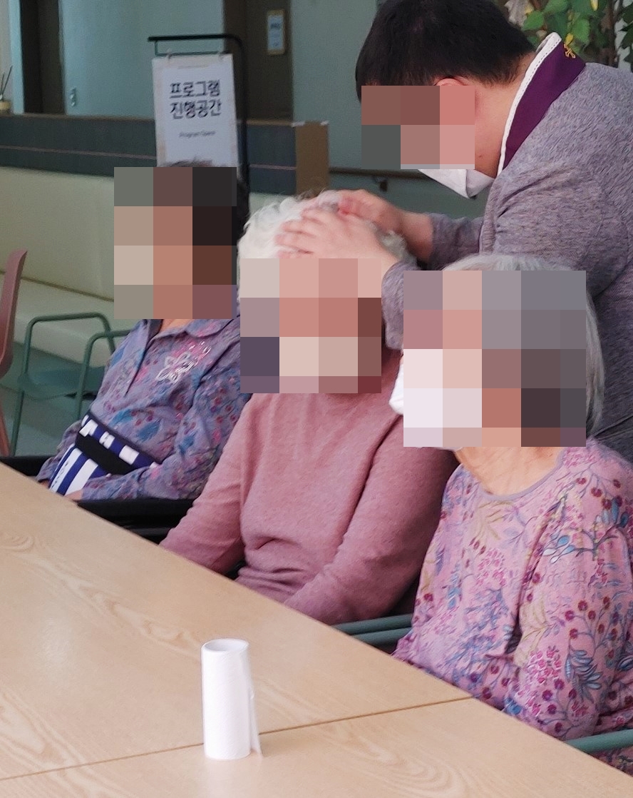 어르신들의 정서적 지지를 위하여 신부님께서 방문해주셨습니다.